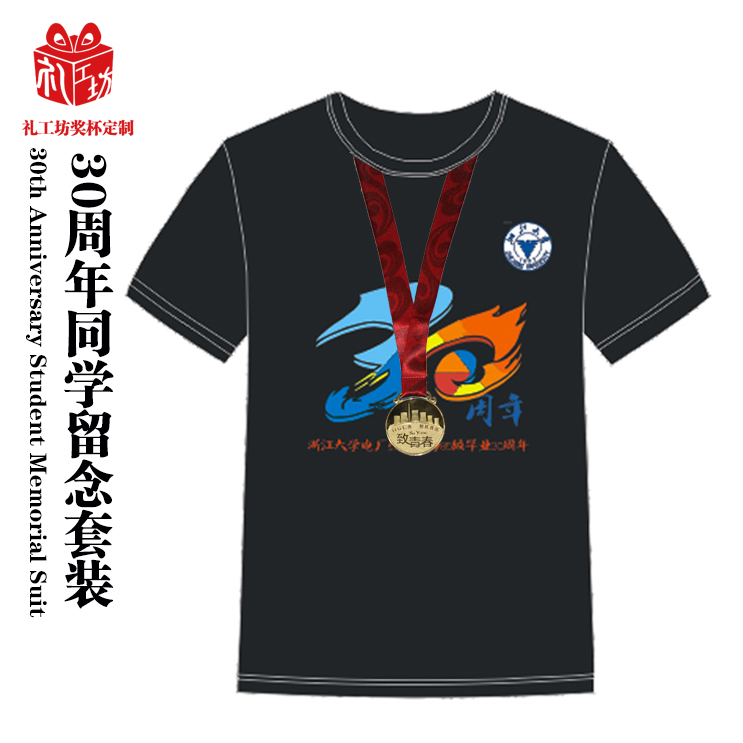 30周年畢業留念套裝(文化衫+金屬掛牌)   型號:LLS-1755精梳全棉  尺寸:S-3XL  材質:100%棉  克重:220g汗布