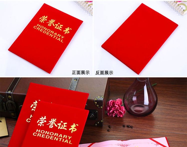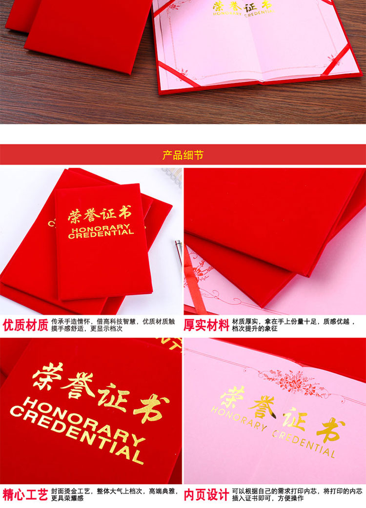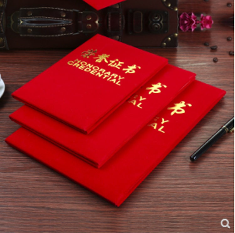 加厚絨面蘇州榮譽證書燙金獎狀封面外殼批發證書可定制定做可打印內芯