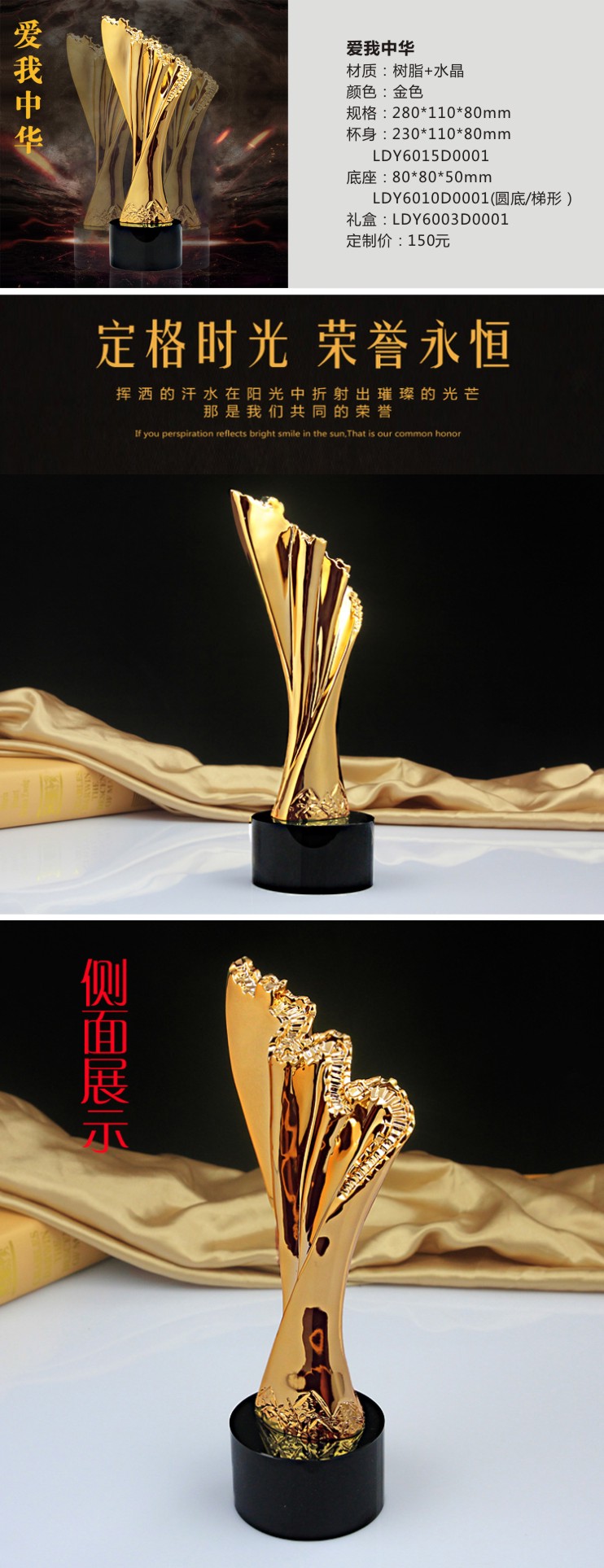 高端合金獎杯,蘇州木底座四周雕刻4家分公司獎項