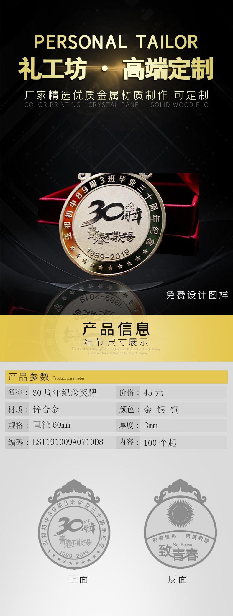 蘇州獎杯獎牌定制比賽企業(yè)同學(xué)聚會專用獎牌30周年紀(jì)念獎牌