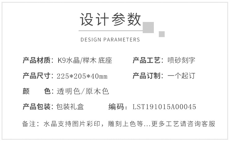 星光閃耀 規格:225*205*40mm 材質:水晶+櫸木 編碼:LST191015A00045