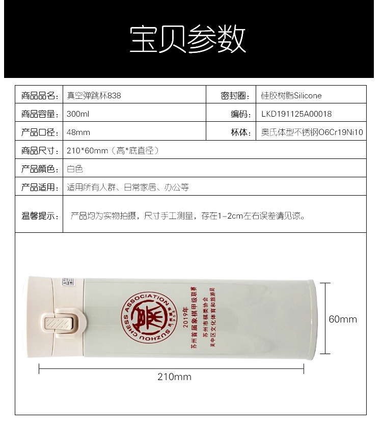 真空保溫杯子彈跳蓋 蘇州創意禮品定制