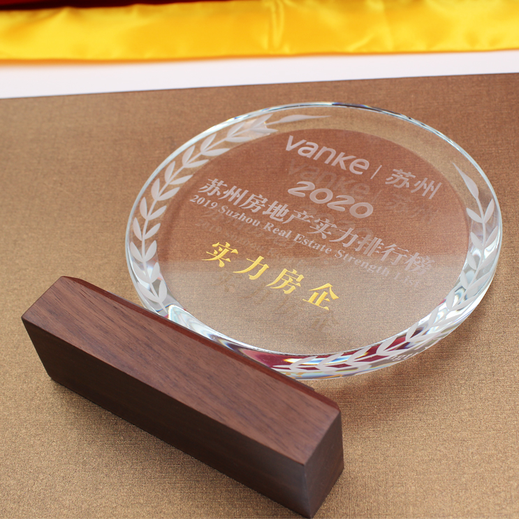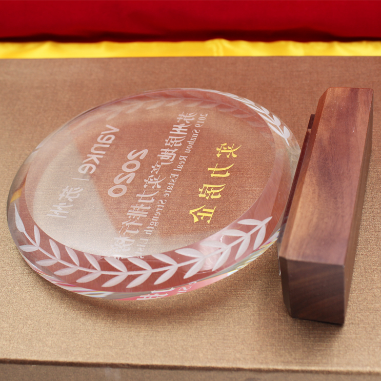 高端合金獎杯,蘇州木底座四周雕刻4家分公司獎項