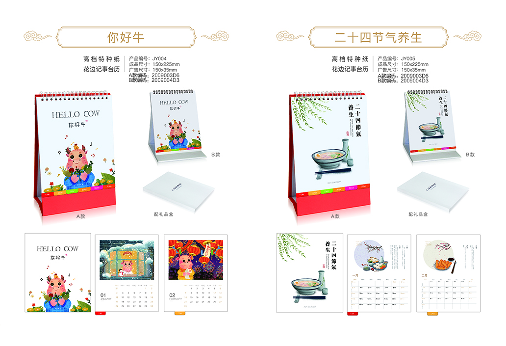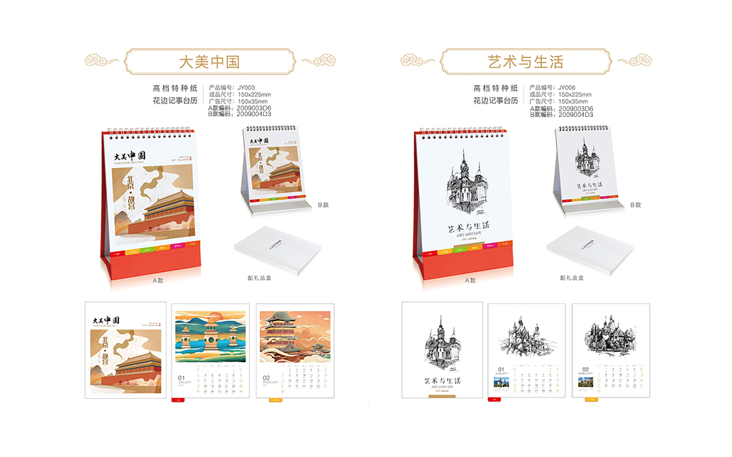 太倉高檔特種紙記事臺歷 ,成品尺寸:150*225mm A款編碼:2009A03D6 B款編碼:2009A04D3