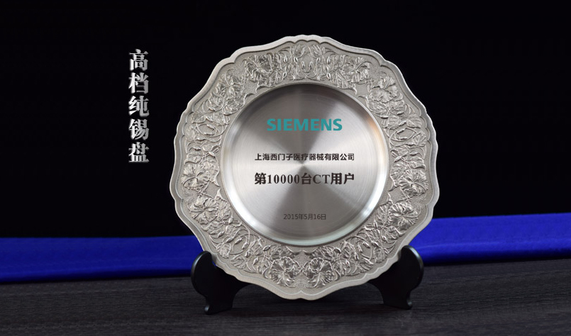 蘇州巴賽爾十年服務獎、錫盤采用97%以上純錫制造,錫盤周圍均由栩栩如生浮雕花紋或風景或人物或建筑圖。 產品中間部分可根據客戶要求定制個性化文字或圖案,內涵豐富、寓意深遠